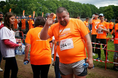 Moja historia z sportem rozpoczęła się dokładnie rok temu. Mój młodszy brat biegał już od kilku miesięcy i dość często zdarzało mi się jeździć na różnego rodzaju zawody by go tam dopingować. W tamtym czasie ważyłem grubo ponad 135kg i nie w głowie mi była jakakolwiek aktywność fizyczna. Na tych wszystkich wyjazdach poznałem ogrom wspaniałych ludzi, atmosfera panująca na takich biegowych imprezach wręcz przyciągała. Pojawiałem się jako kibic właściwie na każdych zawodach w których brał udział mój brat. Zaczęło mnie to wciągać. Pierwszym i właściwie głównym impulsem do ruszenia swojego „cielska” z kanapy był charytatywny bieg „Rak To Się Leczy” w czerwcu 2014r. Ze względu na to że osobiście w 2010r wygrałem walkę z tą chorobą, impuls był naprawdę silny. Do tych zawodów przygotowywałem się tylko 3 tygodnie :/ bez pomocy kogokolwiek, nie korzystając z rad doświadczonych biegaczy, bez planu. Kondycja „zero” waga 135kg – Po prostu wychodziłem z żoną i truchtałem (turlałem się) na przemian z marszem na dystansie od 3-5km. Od samego początku docierało do mnie że nie jest to gra warta świeczki. Po 200m byłem wycieńczony i jedyna rzecz która pchała mnie dalej to , udowodnienie innym że jestem w stanie to zrobić. Taki wewnętrzny strach by wszyscy którzy wiedzieli o moim planie, nie mogli później wytykać mnie palcem że taki „kozak” byłem a wymiękłem.